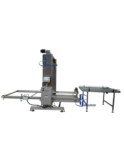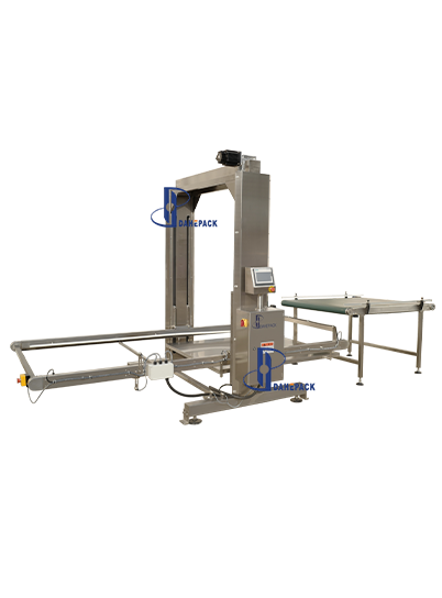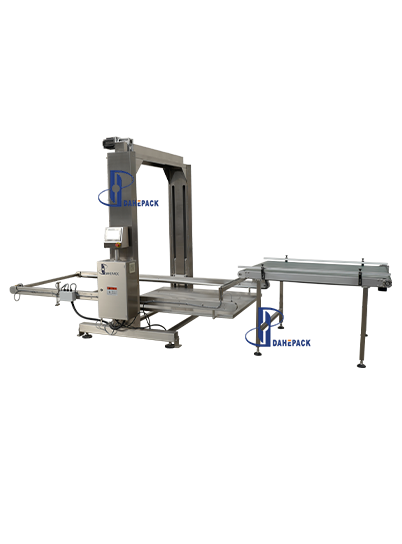 工作原理:人工用地牛將整托盤(pán)空罐運(yùn)至指定位置(碼垛方式為罐口向上),點(diǎn)動(dòng)啟動(dòng)按鈕,系統(tǒng)會(huì)自動(dòng)通過(guò)光電檢測(cè)確定空罐托盤(pán)高度,根據(jù)后面緩存皮帶對(duì)罐子的需求,將一層空罐通過(guò)刮板推至緩存面板上,然后再調(diào)整上下高度與后道的緩存皮帶進(jìn)行高度對(duì)接,再將空罐送至緩存皮帶上待用。緩存皮帶會(huì)根據(jù)理罐機(jī)對(duì)罐子的需求,將罐源源不斷的送至理罐機(jī)上。卸垛機(jī)每卸完一層空罐,設(shè)備自動(dòng)提醒,收到提醒后人工將兩層空罐之間的紙板拿走,直至整個(gè)托盤(pán)上的空罐全部卸完,再進(jìn)行下一個(gè)循環(huán)。